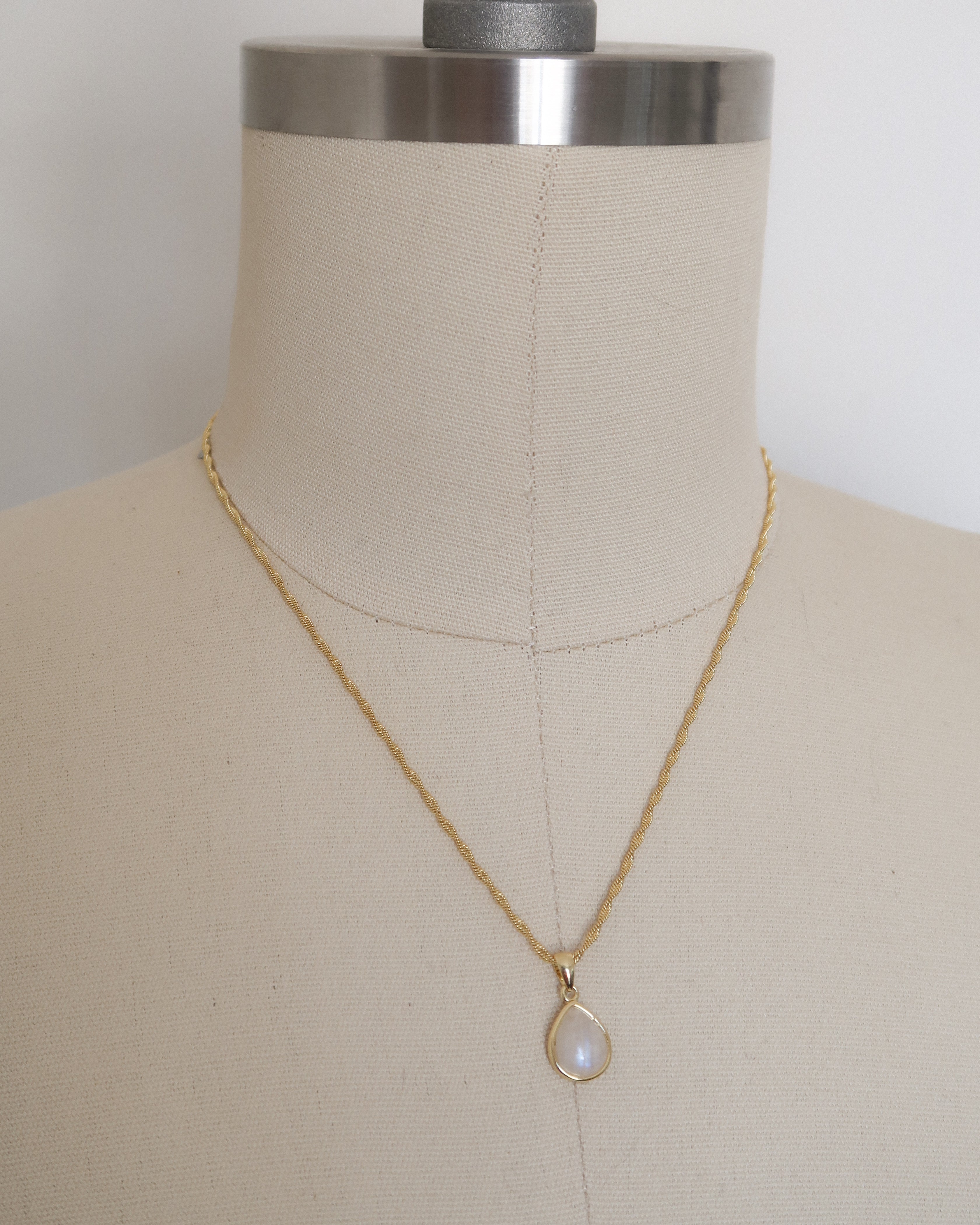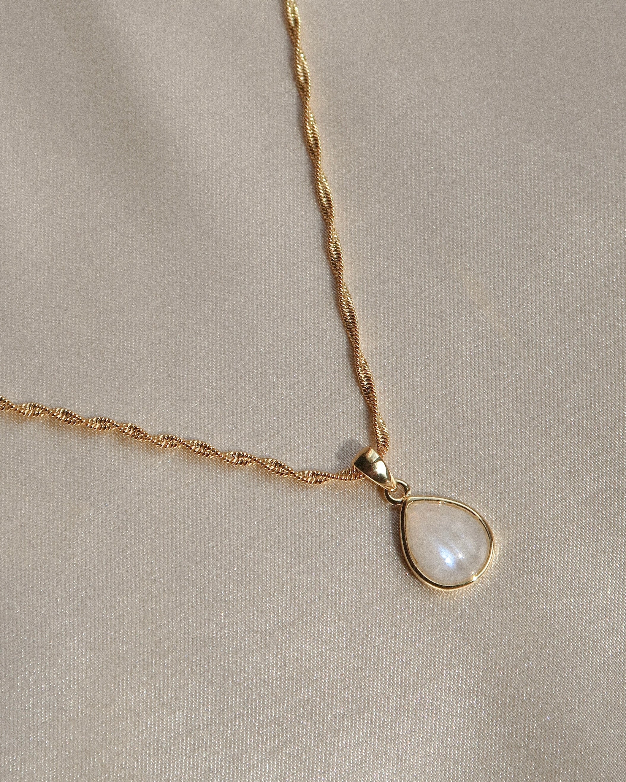 • Materials: 18k gold-plated stainless steel chain, gold-filled brass pendant with natural moonstone