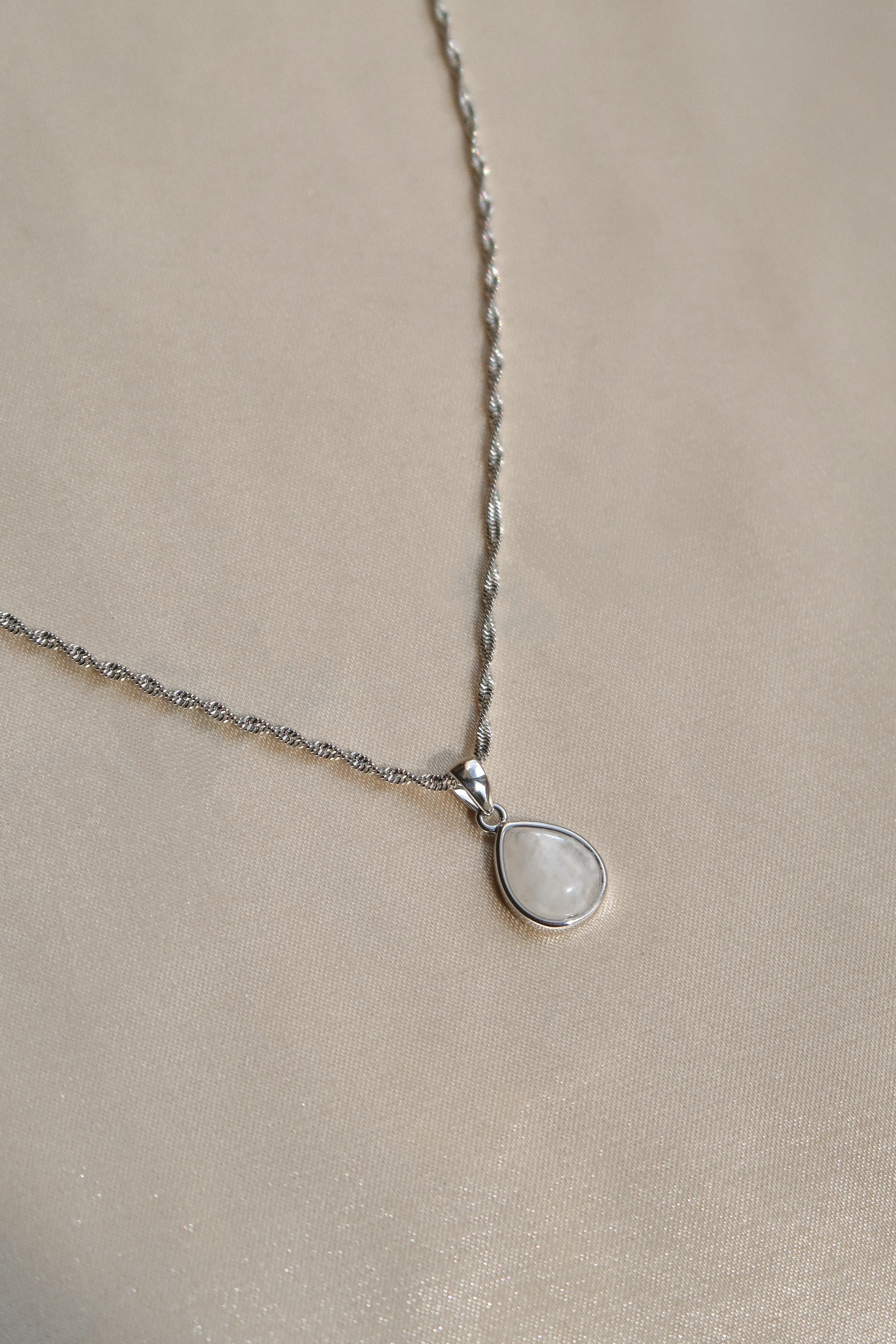 A luminous treasure kissed by moonlight. The Bijou Moonstone Necklace pairs a delicate 18k gold-plated stainless steel chain with a gold-filled brass pendant set with natural moonstone. Known for its ethereal flashes of light, moonstone has long been a symbol of intuition, love, and feminine energy.