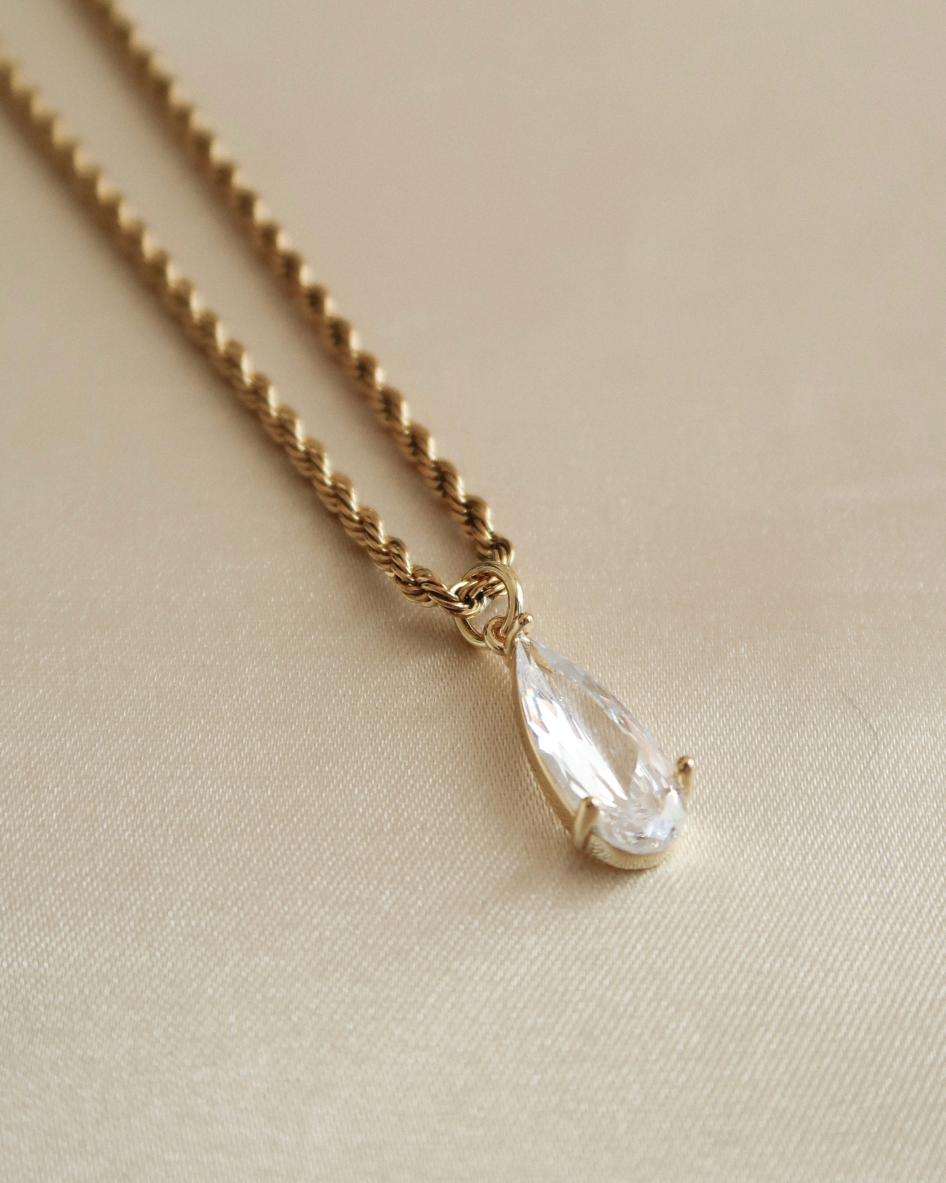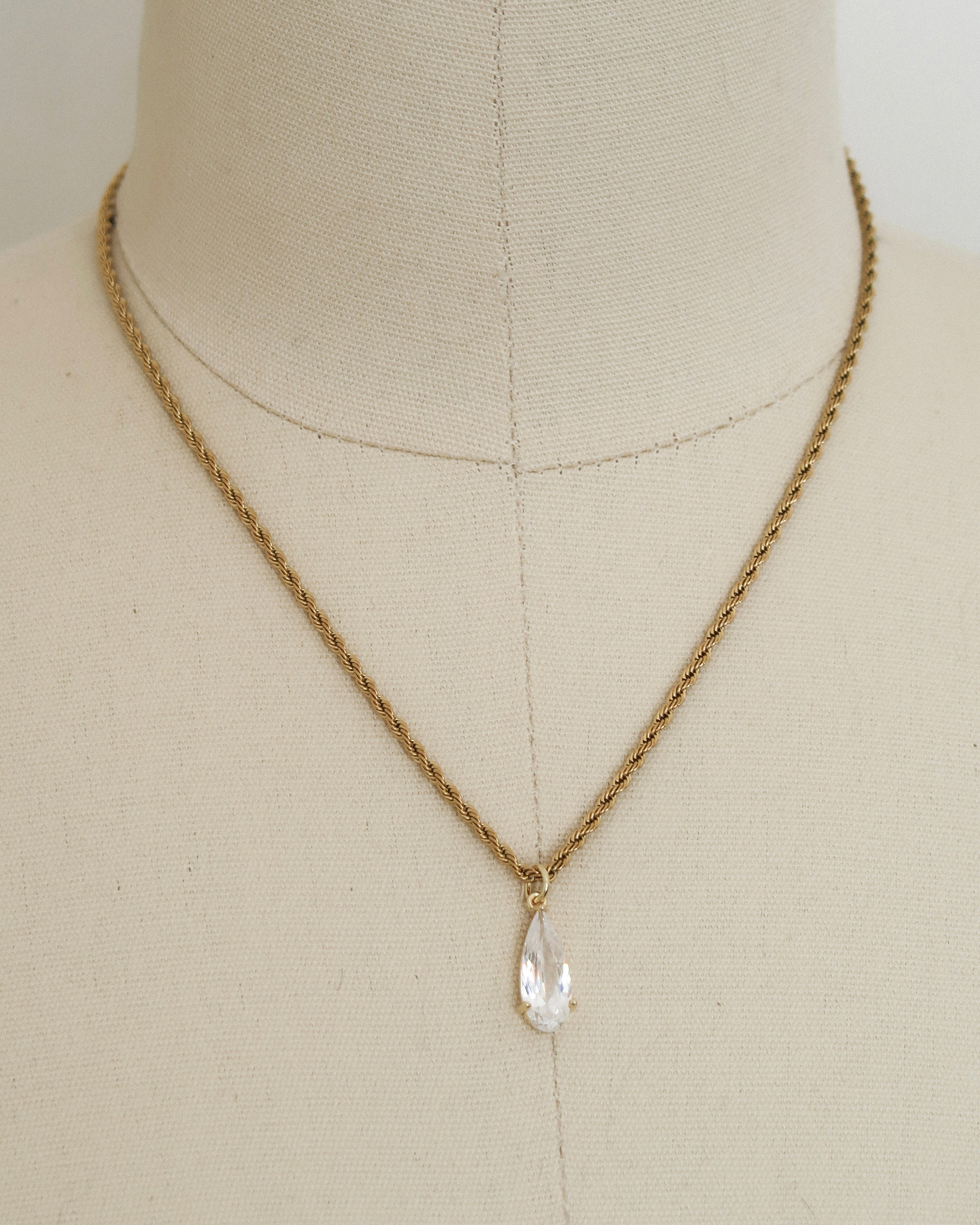 Float through your day like a dream in our Heavenly Drop Necklace. A delicate, light-catching crystal teardrop is suspended from a soft rope chain, designed to glisten against bare skin or layered over your favorite blouse. This best-selling silhouette now comes in two radiant finishes — high-polish silver (stainless steel) or a rich 18k gold vacuum-plated chain — with a 14k gold-filled droplet at the heart of both.