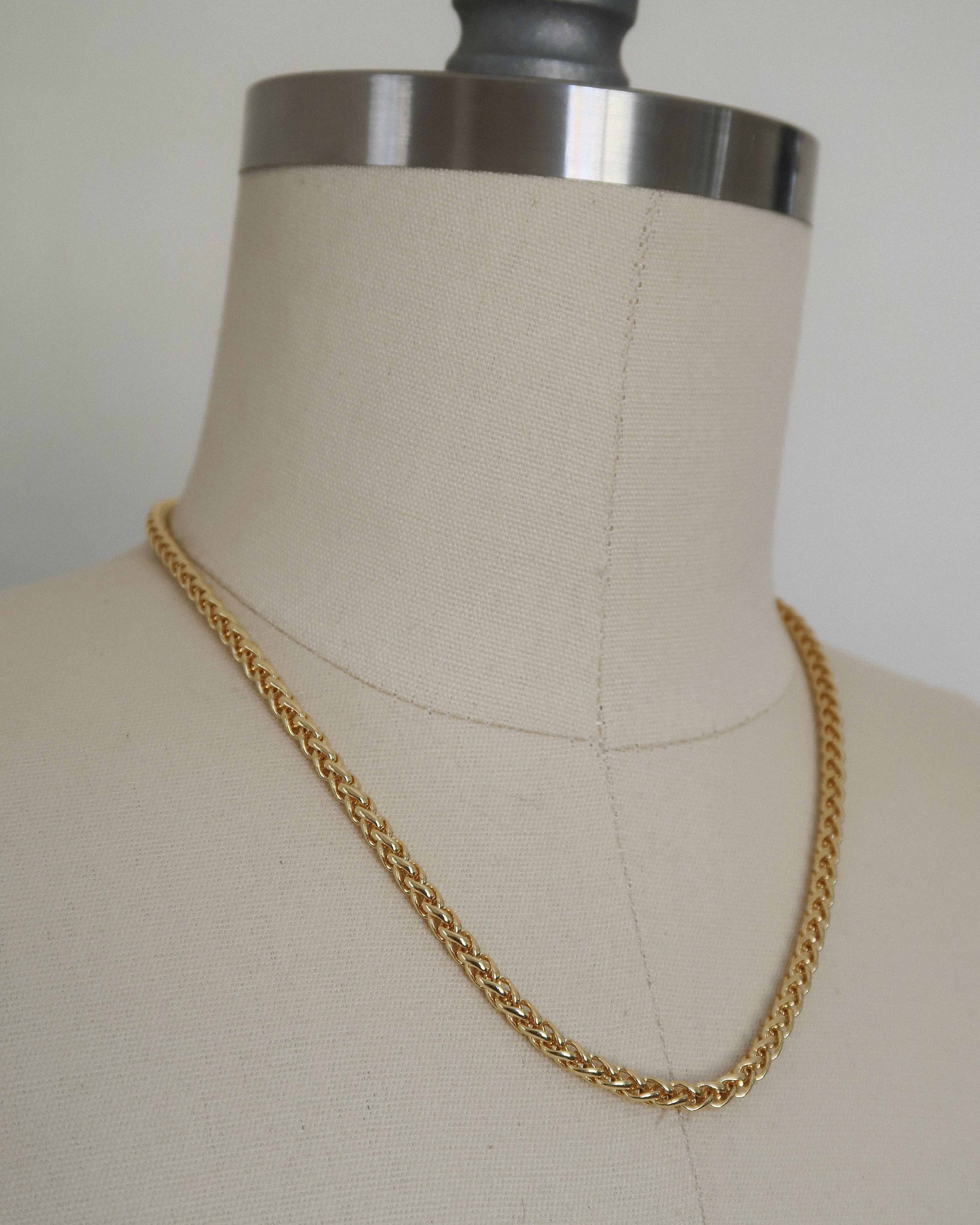 The Marina Necklace is a vintage-inspired rope chain designed to catch the light and elevate your everyday look. Heavier than a standard chain but still effortlessly wearable, this piece brings quiet power to your jewelry rotation—bold enough to wear solo, timeless enough to layer with your favorite pendants.
