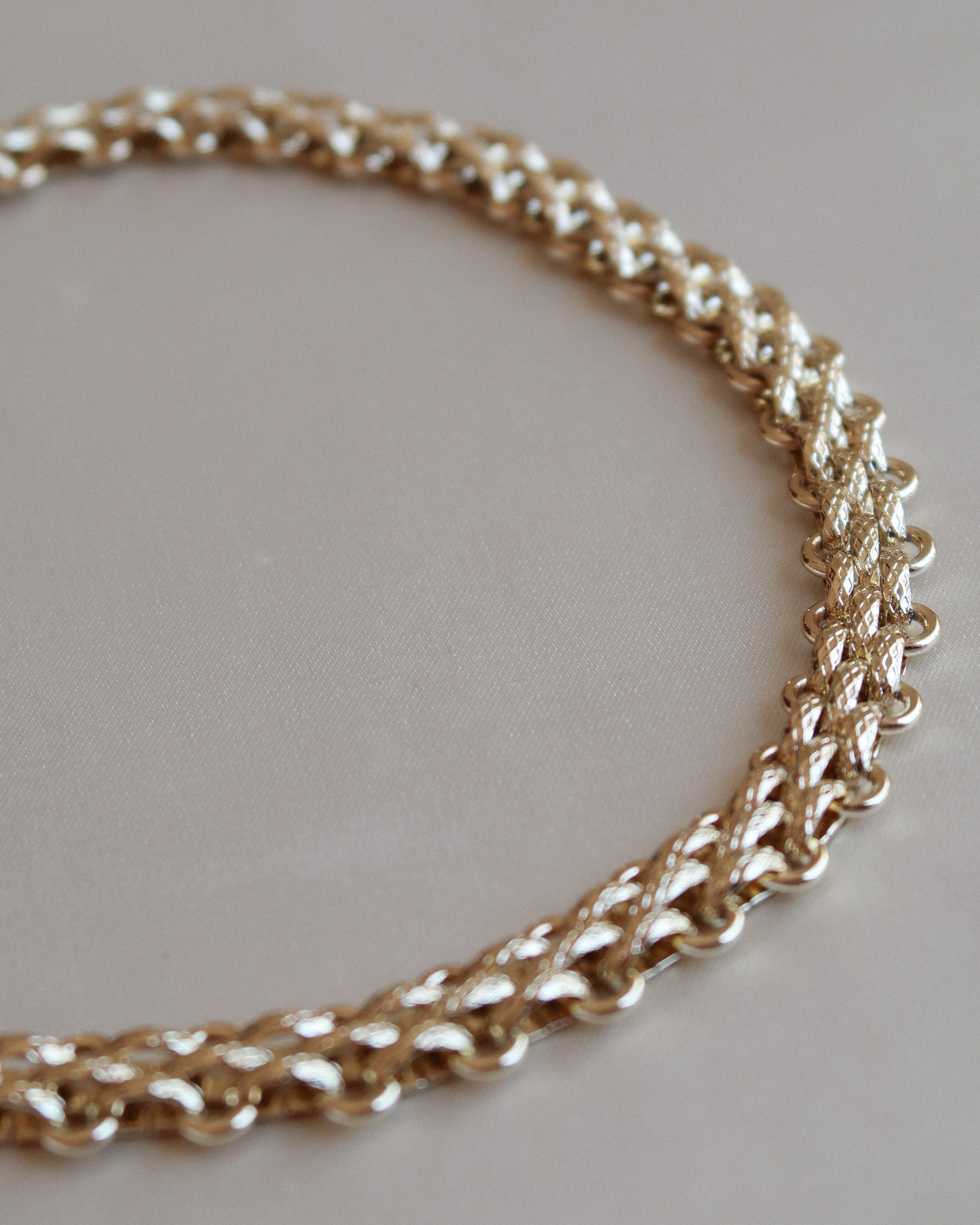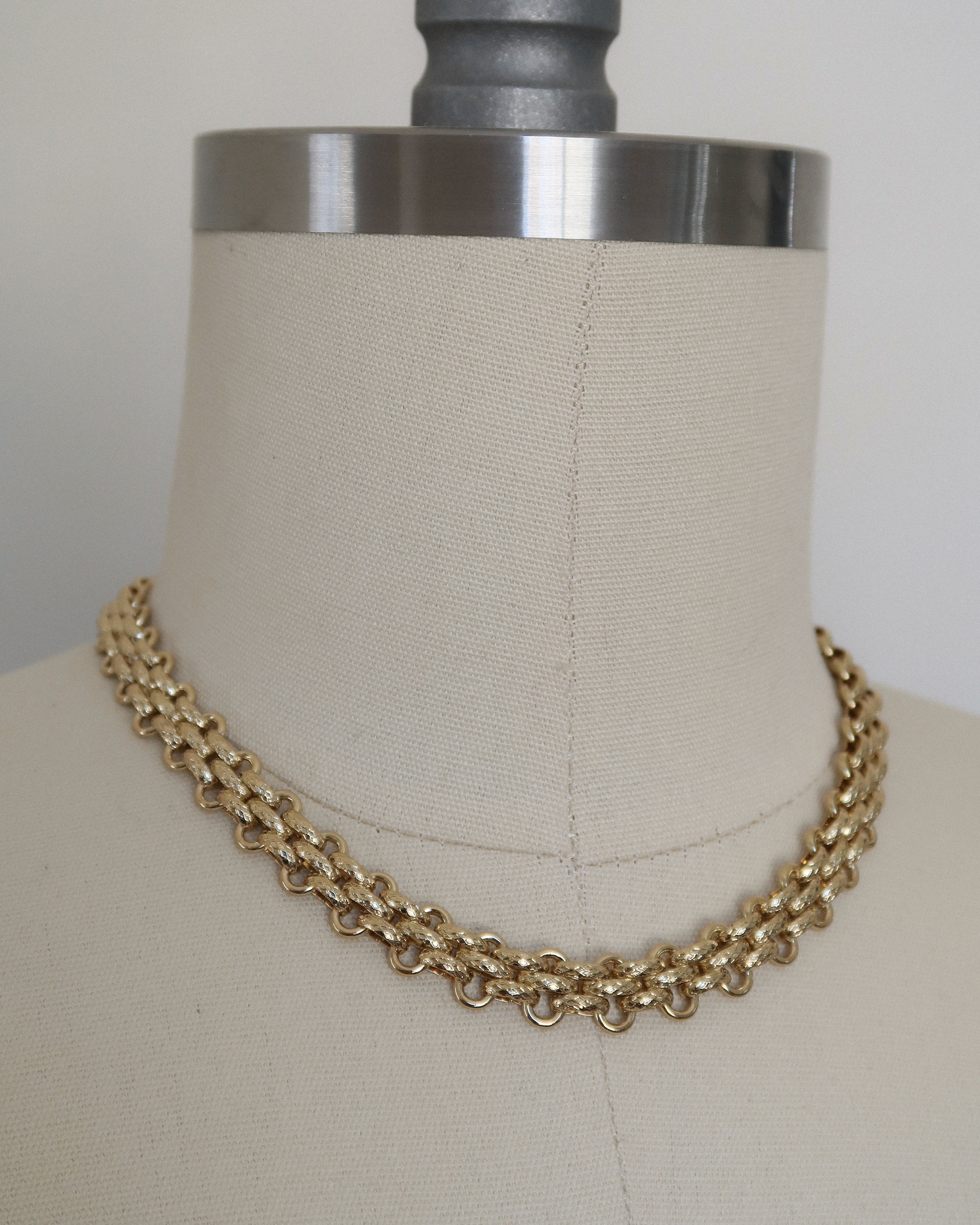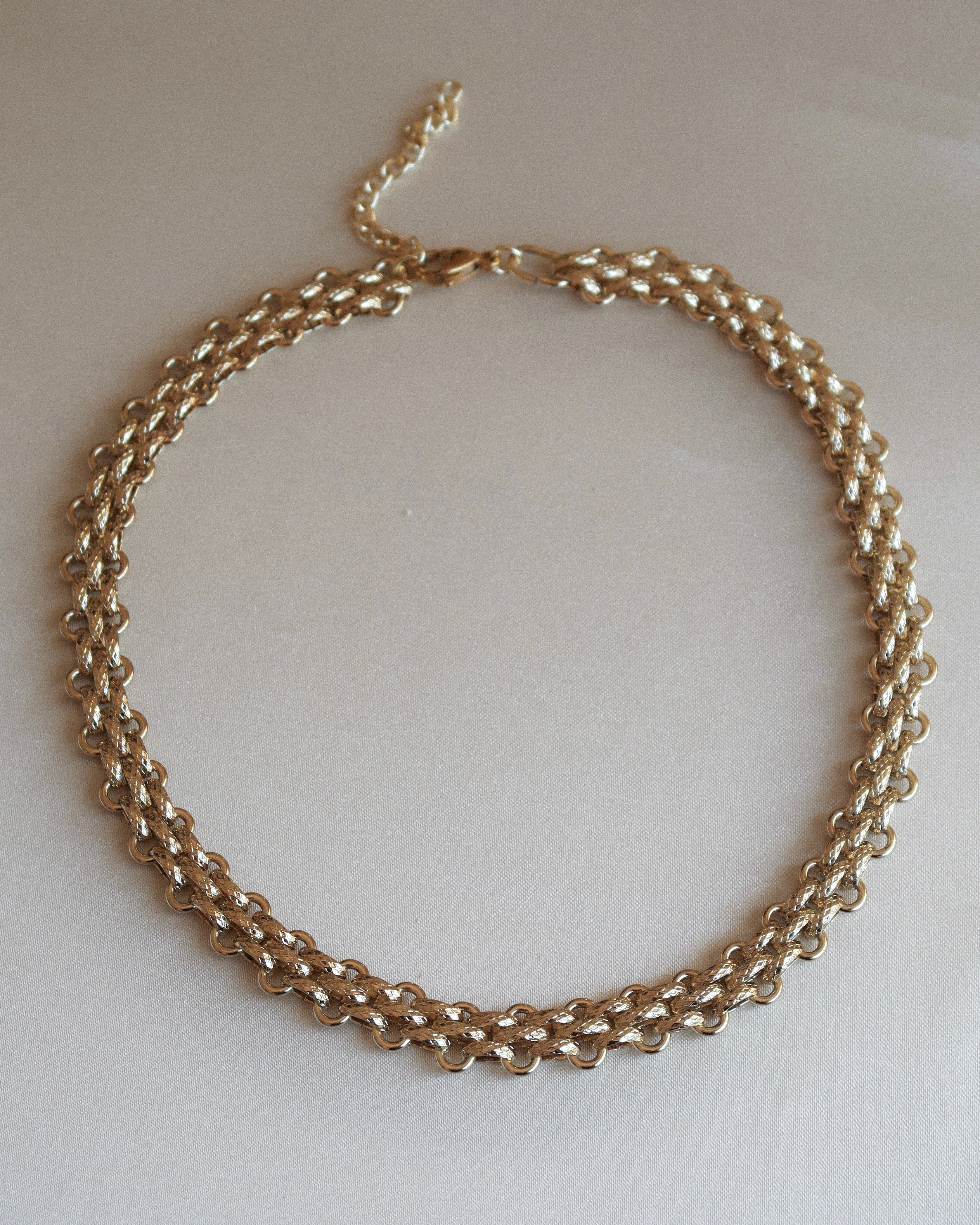 A statement piece that doesn’t shout — the Paloma Chain is a thick, textured layering choker that adds quiet drama to your neckline. With a gleaming woven link design and a shorter 14-inch fit plus a 2-inch extender, this 18K gold-plated stainless steel chain hugs just right. It’s bold, vintage-inspired, and delicately heavy — perfect solo or layered with your favorite pendant or pearls.
